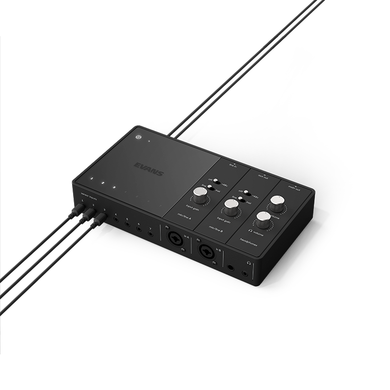 After you attach the sensors to your drums, cymbals, and hi-hat, plug the 3.5mm cables into the sensors. Then plug those into the Sensor Inputs on the EVANS Portal interface.